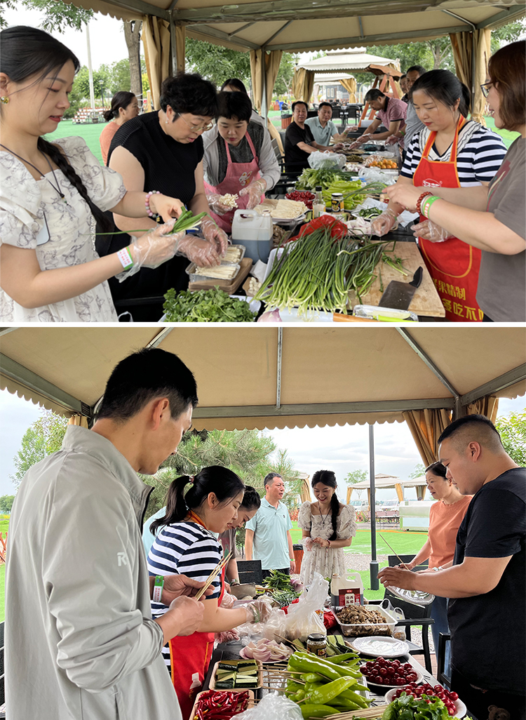小伙伴們不但能在工作的領域上發光發熱,在廚房的方寸之地中也能大展拳腳,大家分工合作,把控好每個環節,團結一心地做好燒烤前的準備工作。